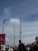 The Gondola (the sphere holding the passengers) is held firmly in place by a very strong electro-magnet. Two winches that are positioned on either side then stretch the rubber cords up to the tops of the towers. Once they reach the top, the magnet is released and the ball is catapulted 182 feet in the air! The gondola is free spinning, so as well as experiencing acceleration of up to 4.8g, riders also turn over and over!
